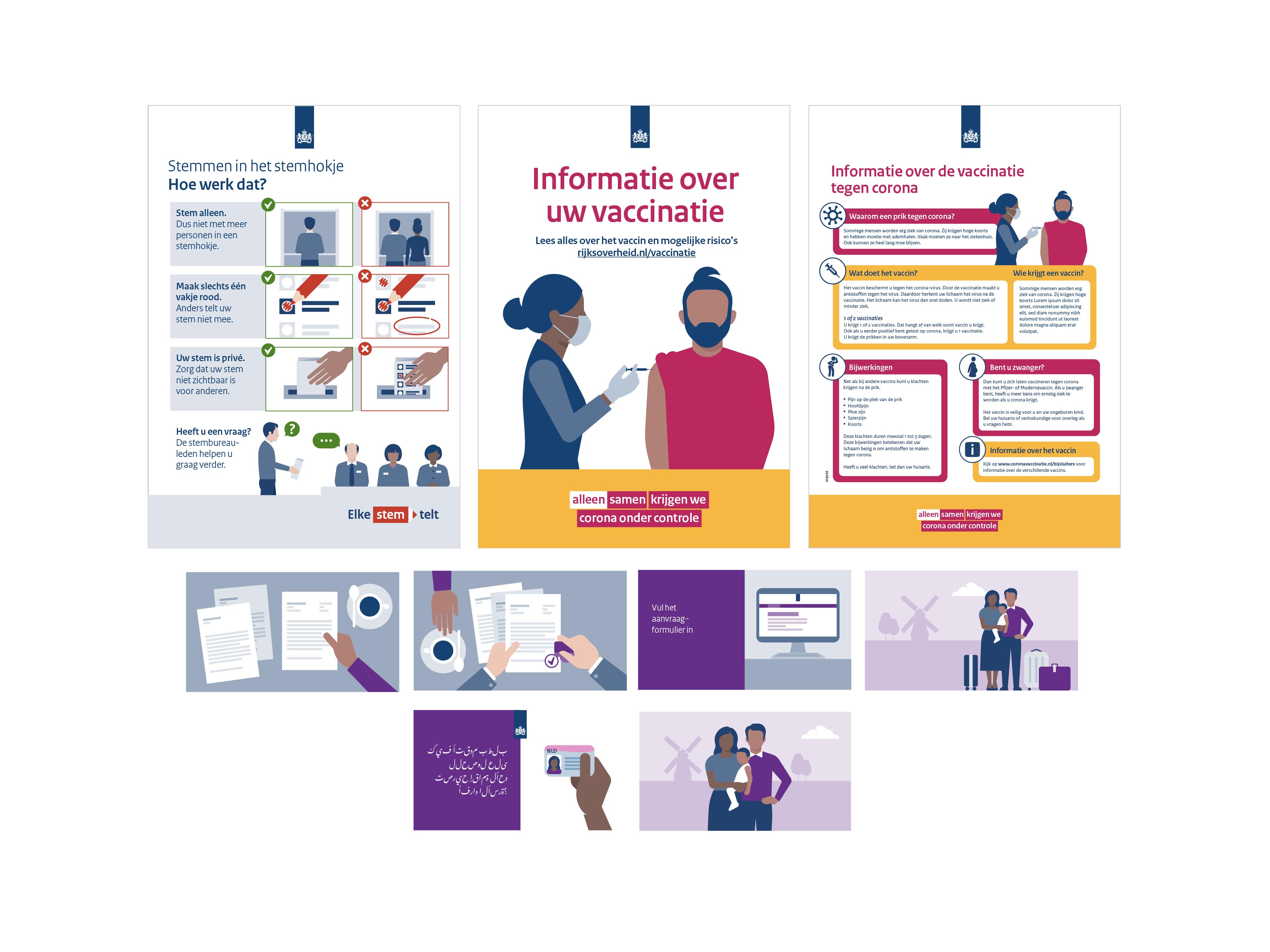 Om de herkenbaarheid en authenticiteit van Rijksoverheid-uitingen te versterken, is Motif gevraagd om een gezamenlijke illustratiestijl te ontwikkelen voor alle organisatieonderdelen rijksbreed. Het resultaat en een groeiende database van karakters, objecten en situaties waar ontwerpers zelf illustraties kunnen samenstellen. Een illustratiestijl voor gezamenlijk gebruik, waarin onze hele maatschappij zich kan herkennen.