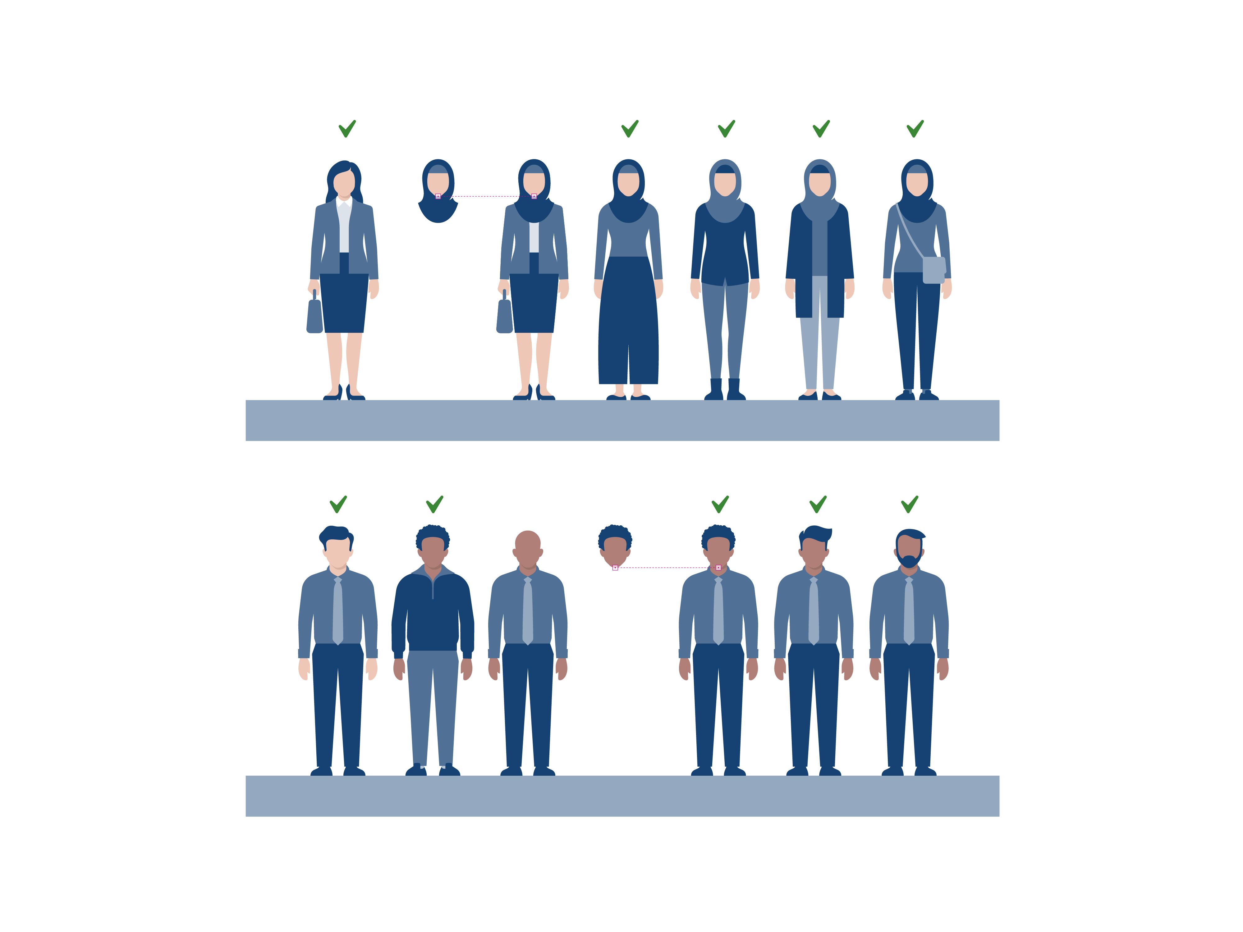 De rijksbrede illustratiestijl is ontwikkeld met maximale aanpasbaarheid en uitwisselbaarheid als uitgangspunt. Alle elementen uit de illustraties zijn op een gestandaardiseerd perspectief geïllustreerd en volgen een vast maatsysteem. Ook de karakters zijn gebaseerd op standaard anatomisch draadmodel. Hierdoor zijn kledingstukken en kapsels onderling uitwisselbaar.